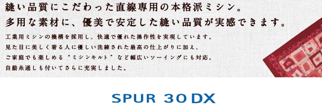 職業用ミシン国内シェアNO.1のSPUR(シュプール)です。 ポータブル職業用ミシンとしては最高峰のミシンだと当店は思います。職業用ミシンをお探しの方には、ぜひオススメします。 当店の販売価格は↓メールフォームからお気軽にお問い合わせ下さい♪
